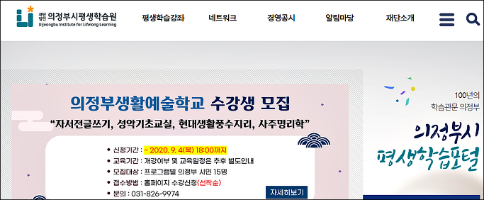 (재)의정부시평생학습원에서 하반기 생활풍수지리 강의가 개설되었습니다.