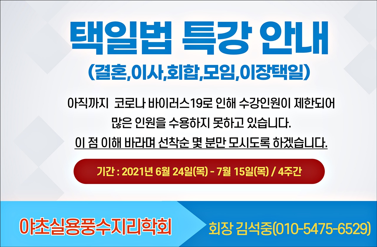 ◈ 택일법 특강 계획◐ 기 간 : 6.24(목)~7.15(목)(4주간)