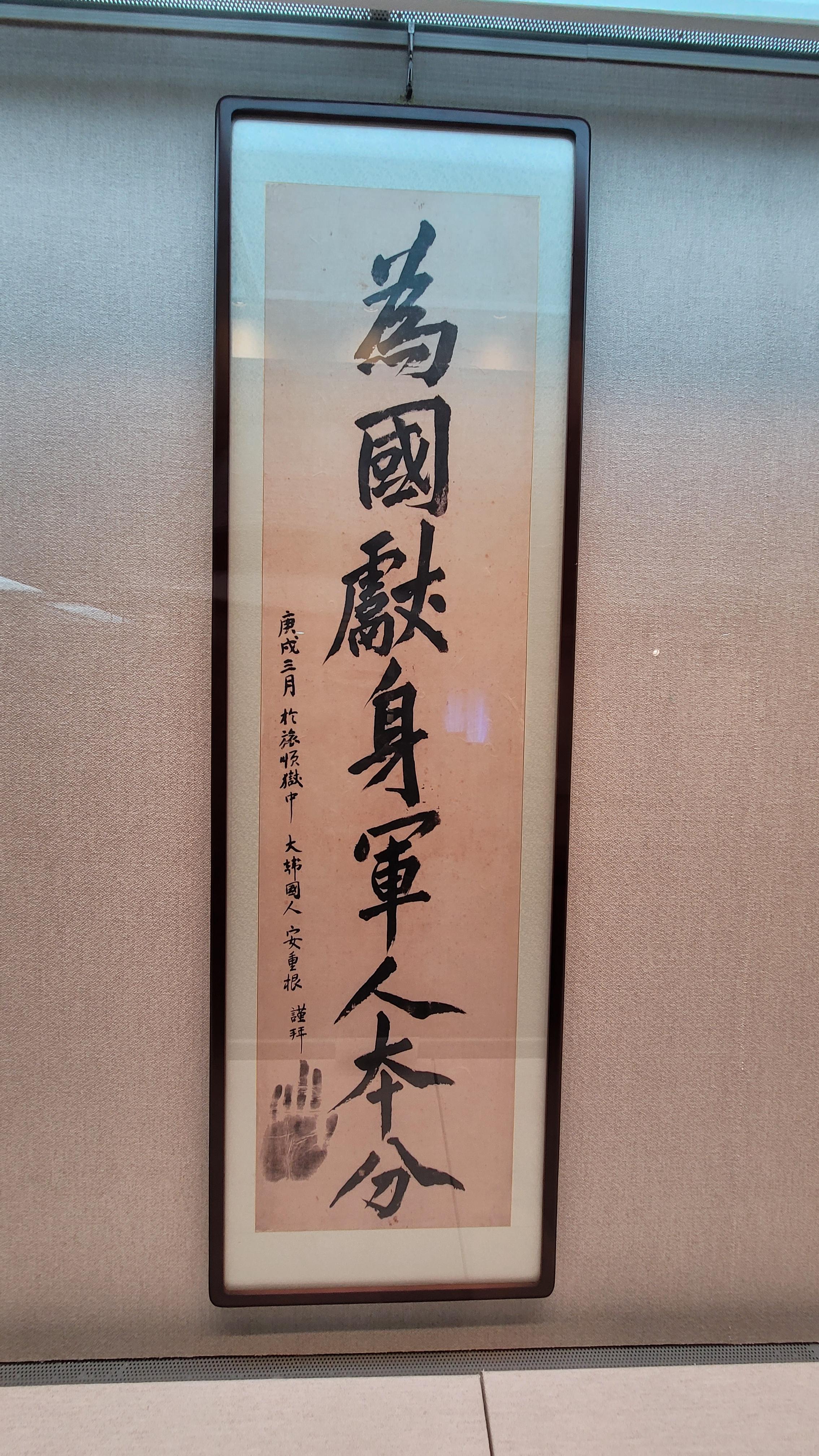 ▼ 유묵 대부분이 복제품인데... 위국헌신군인본분은 복제품이라는 팻말이 없는 것으로 봐서 진품으로 추정된다. 일일불독서..는 복제품...