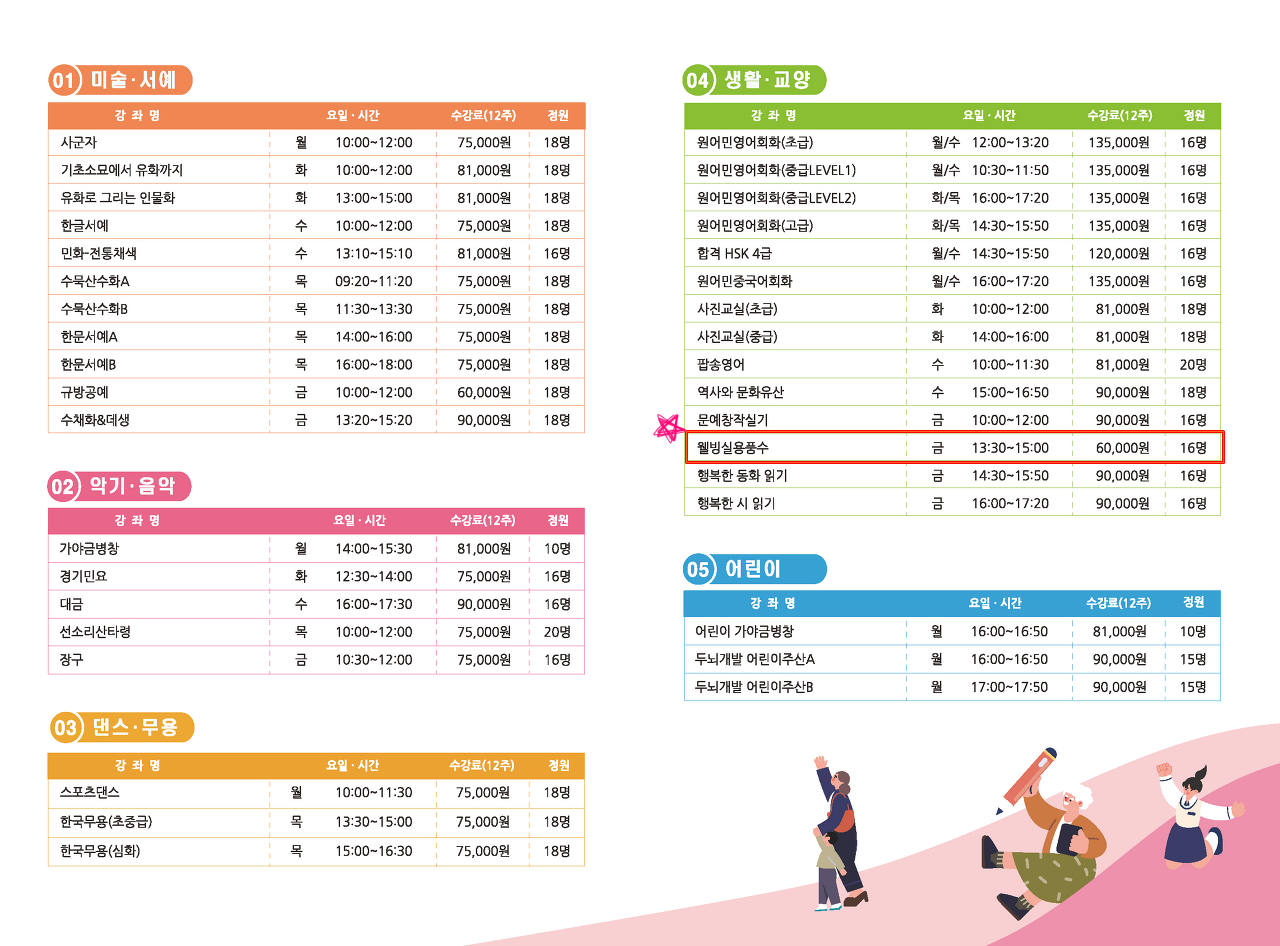 * 단, 규방공예 / 웰빙실용풍수 수강료는 변동없음.
