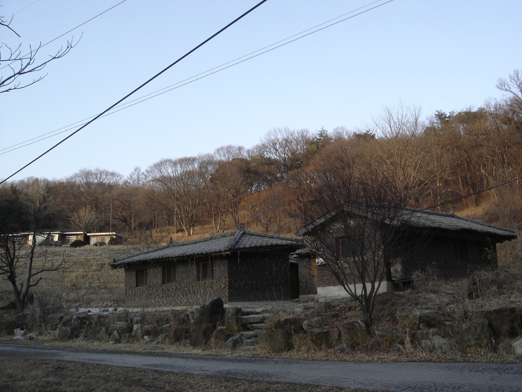 ▼ 이경여 묘... 기와집 뒤 똑바른 곳... 능선 위에 있습니다... 앞쪽 기와집 오른쪽으로 돌아가면 됩니다.▼ 이경여 묘의 주산인 주금산(鑄金山)... 산 이름에서 알 수 있듯 돈이 넘쳐나는 산이네요...