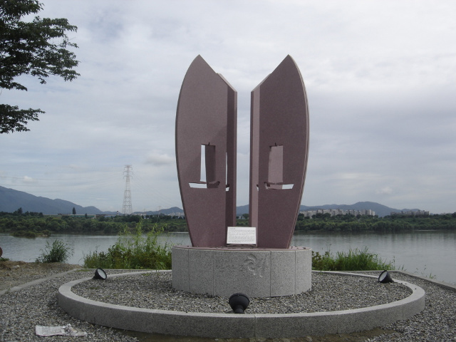 미음나루 기념조형물.. 돗대모양으로 아주 멋있다.. 강건너는 미사리쪽...