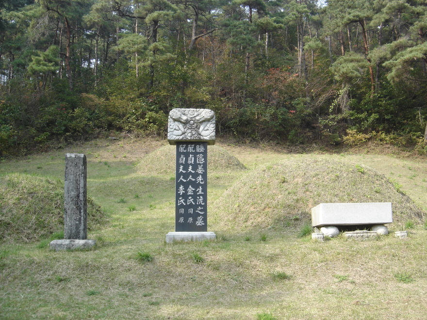 맨위가 본부인 강씨, 백호쪽이 이씨, 청룡쪽이 강항선생이다. 원래 이런 형태는 앞쪽 백호쪽이